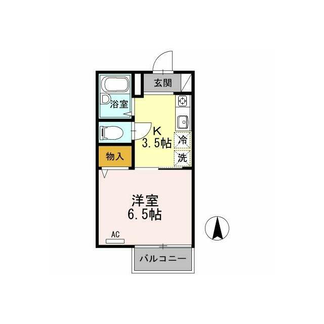 | 間取り | 1K(洋6.5、K3.5) | 主要採光面 | 南 |